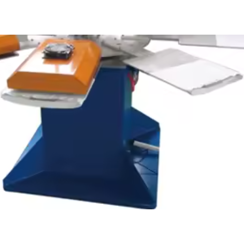 It rotates garments through multiple print stations for automatic inking, curing, and high-speed production.